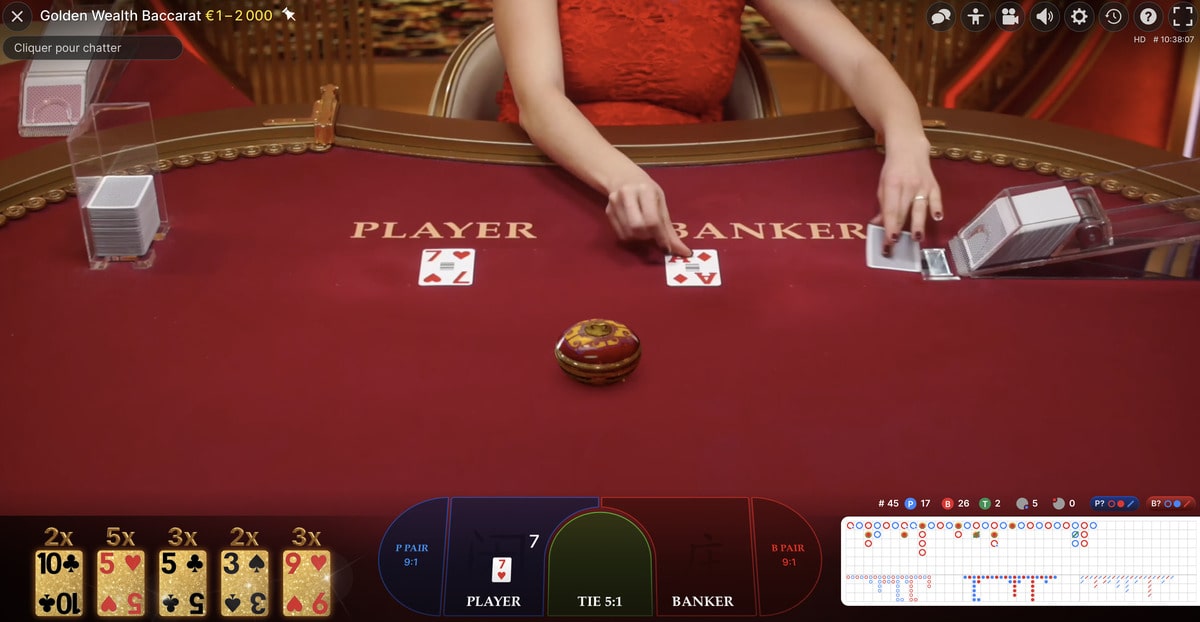 Animées par de vrais croupiers en direct, ces parties de Baccarat Live sont retransmises en streaming live grâce à des caméras HD et des micros qui permettent une véritable immersion dans ces environnements conçus à dessein.